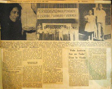 La muerte de periodista fue una experiencia dolorosa que marcó las vidas de su esposa Clara Herrera, Viuda de Altamirano, quien no se separaba del ataúd de su esposo asesinado, víctima de un gran nerviosismo, sólo expresaba en aquel el entonces “pido Justicia eso es todo” (Periódico “El Mundo” de Tampico 30 de julio de 1960).