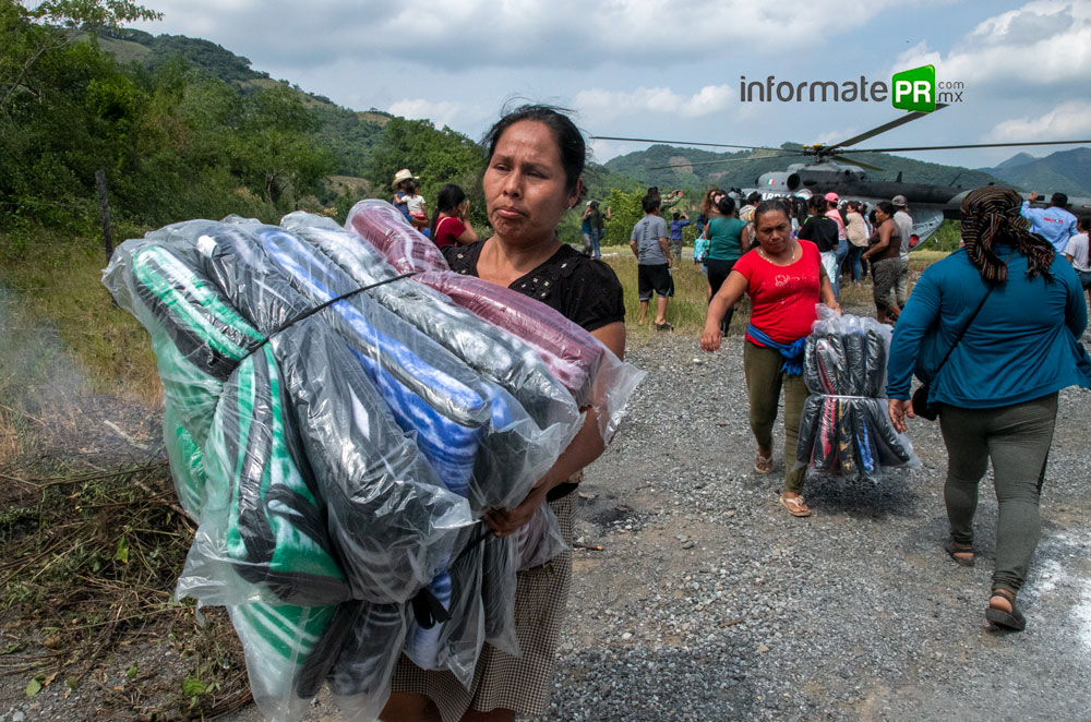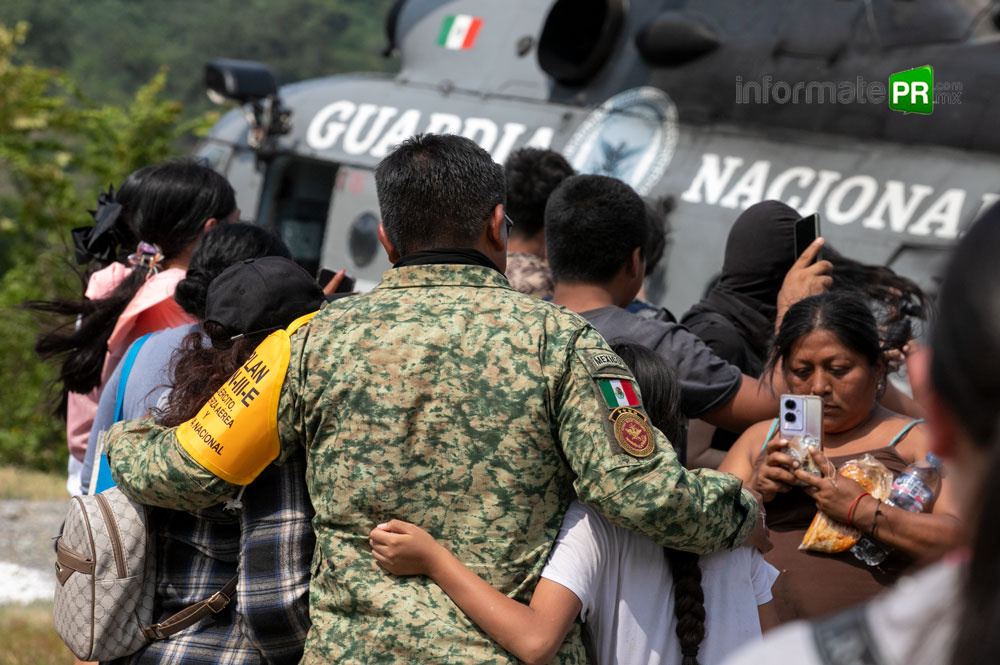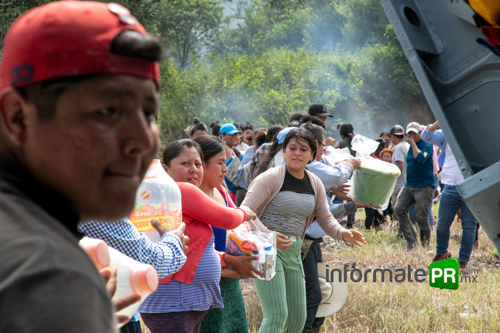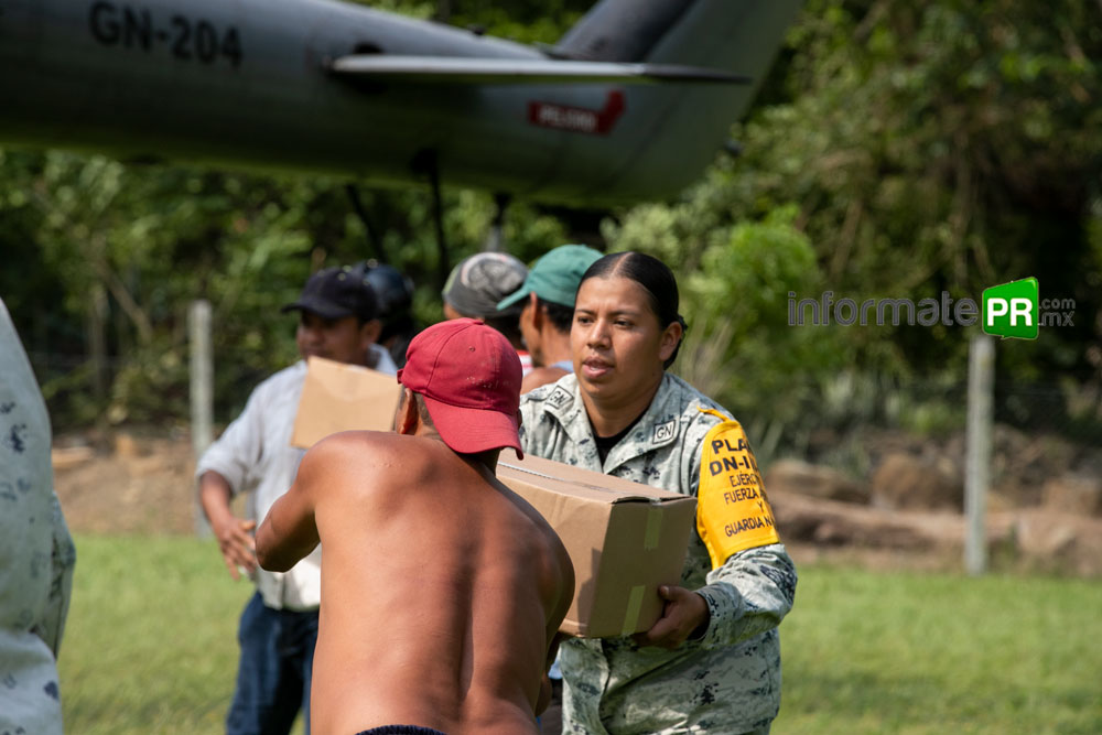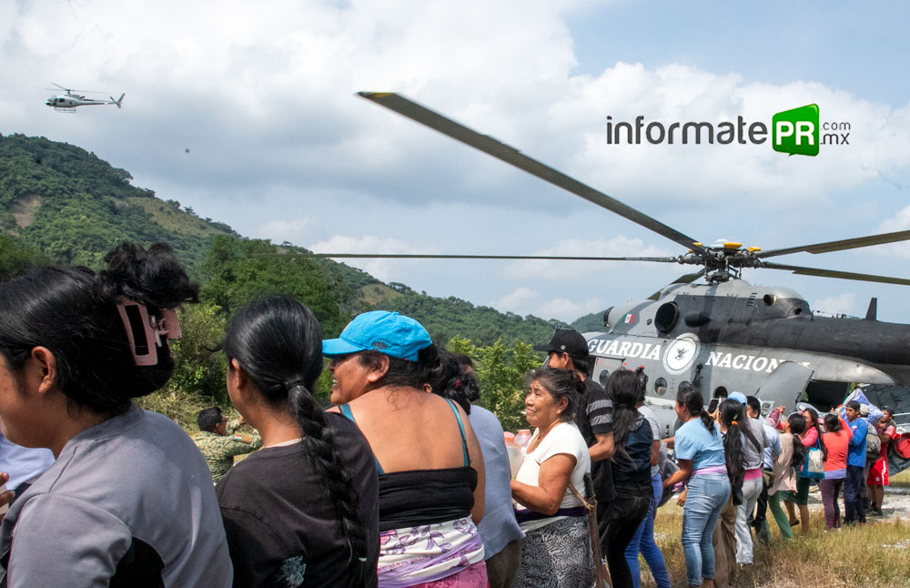 La Fuerza Aérea Mexicana, la Guardia Nacional y el Ejército Mexicano se han dado a la tarea de volar cientos de kilómetros diariamente para llegar a esos rincones intrincados entre los cerros de la huaxteca baja, este sábado en el aeropuerto Tajín de Poza Rica- Tihuatlán, una de las aeronaves de la Guardia Nacional fue cargada con ayuda humanitaria para partir, sobre la zona montañosa.